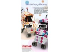 Manito LuxuryHarmony is an outstanding product. In spite ofconsiderable fabrics loss, it has been cut into pieces to fit theshowy pattern at maximum. Luxurydesign with top quality fabrics makes baby look better, and it hasexcellent windproof and waterproof. We takeprice in top design and quality comparing with any stroller weathershield in the world.